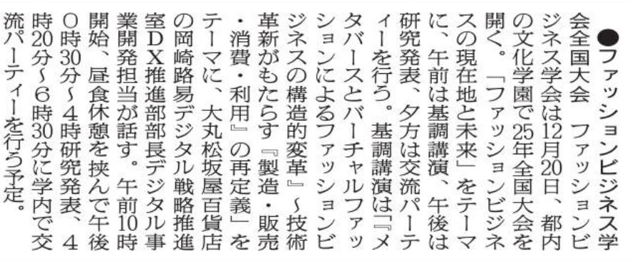 12/20(土)に開催する全国大会について繊研新聞に事前告知が掲載されました。